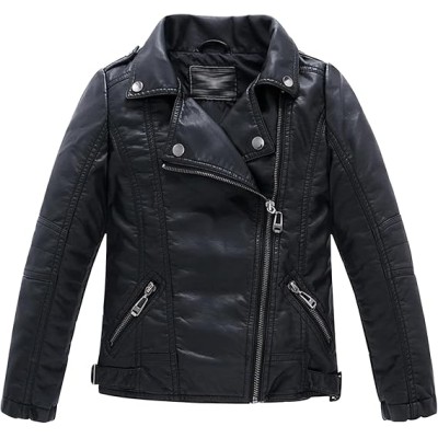 Boys Girls Spring Motorcycle Faux Leather Jackets with Oblique Zipper