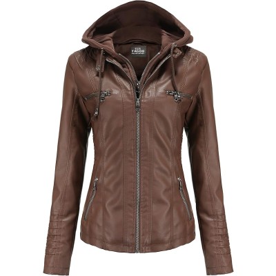 Faux Leather Jacket Women Motorcycle Coat for Biker with Removable Hood Plus Size