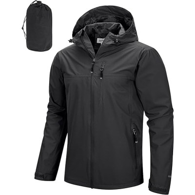 Men's Packable Rain Jacket Lightweight Rain Shell Jacket with Hood Waterproof Raincoat for Cycling