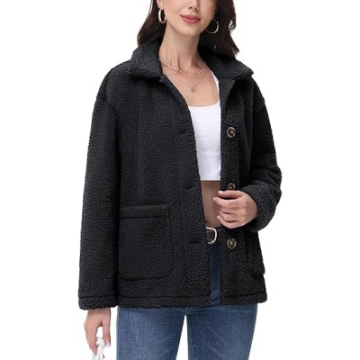 Womens Fuzzy Fleece Jacket Button Down Long Sleeve Outwear Winter Sherpa Coatsr with Pockets