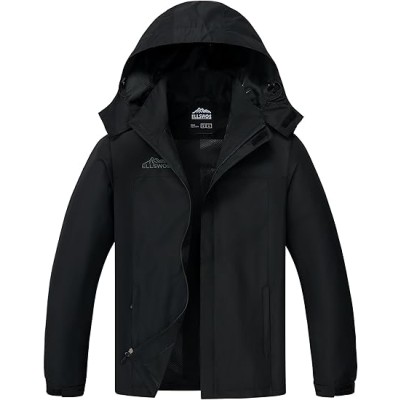 Men's Waterproof Raincoat Lightweight Rain Jacket with Detachable Hood Softshell Windbreakerl for Hiking Travel