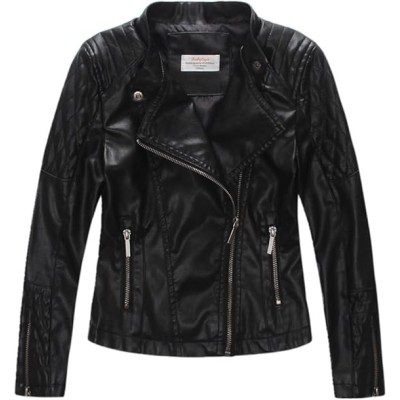 Girls Faux Leather Quilted Shoulder Motorcycle Jackets Kids Spring Moto Biker Coats