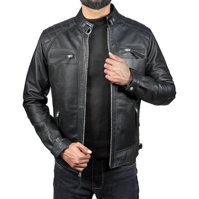 Lambskin Leather Jacket Men - Cafe Racer Mens Vintage Motorcycle Jacket - Biker Leather Jackets for Men