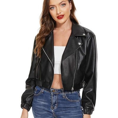 Women Faux Leather Cropped Jacket Trendy Moto Biker Short Jacket Fashion PU Coat Party Jacket