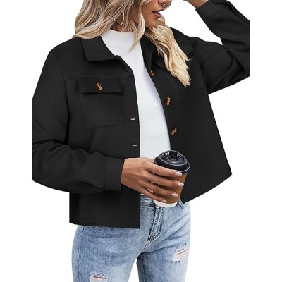 Womens Fashion Cropped Shackets Corduroy Button Down Crop Jackets Tops Long Sleeve Shirts Trendy 2025