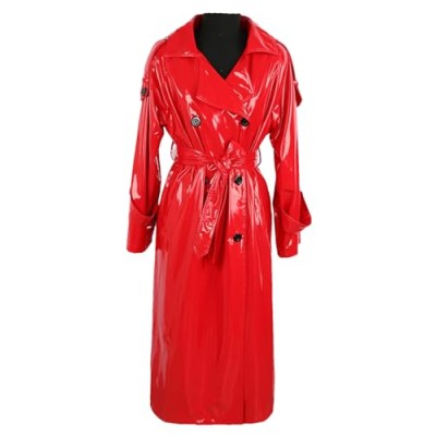 Women Long Waterproof Black Patent Leather Trench Double Breasted Iridescent Oversized Leather Coat