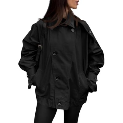 Womens Trench Coat Single Breasted Lapel Casual Oversized Coats Short Jacket Fall Outerwear