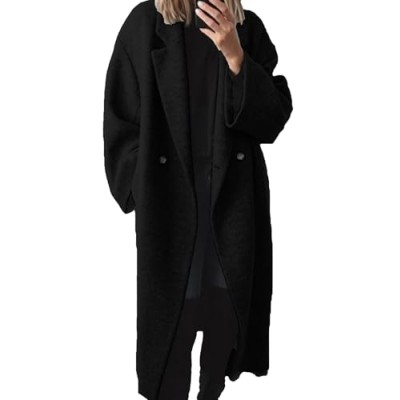 Women's Winter Double Breasted Pea Coat Oversized Notch Lapel Long Trench Coat Warm Wool Blend Jackets