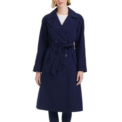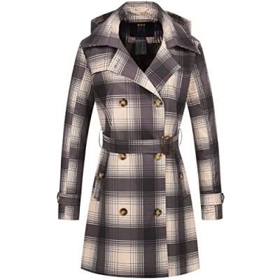 Women's Trench Coat Double-Breasted Classic Lapel Overcoat Belted Slim Outerwear Coat with Detachable Hood