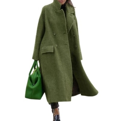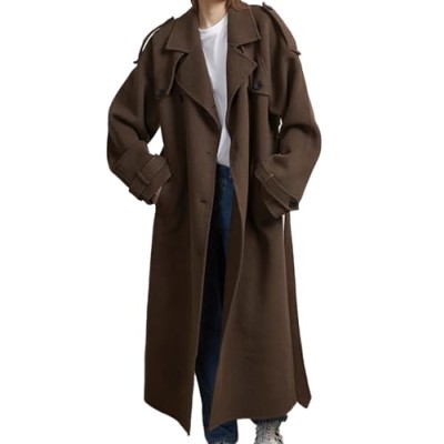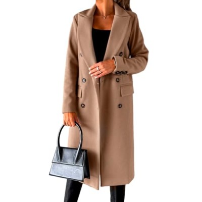 Womens Long Wool Coat Double Breasted Trench Coat Fall Winter Clothes