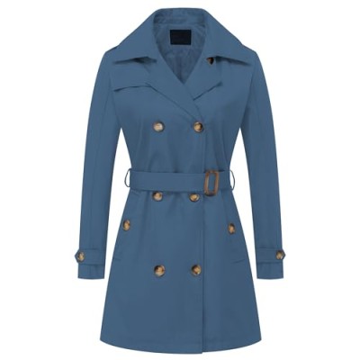 Womens Lapel Trench Coat Double Breasted Cropped Jacket Casual Outwear with Belt