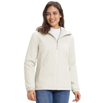 Women's Fleece Lined Rain Jackets Warm Rain Coats with Hood Waterproof Skiing Jackets Windbreaker