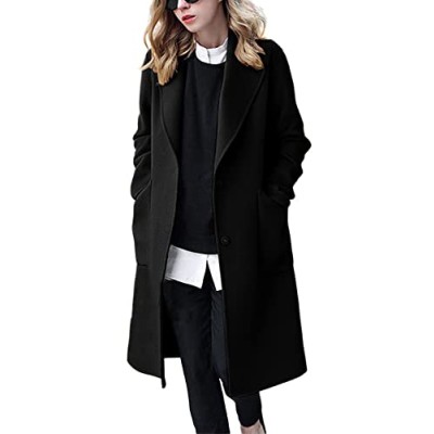 Women's Winter Casual Single Breasted Long Wool Coat Formal Office Wool Overcoat