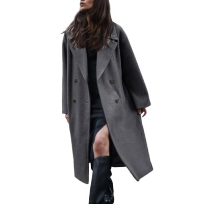 Long Wool Coats for Women Fall Winter Trench Coat Peacoat Double Breasted Blazer Jackets Overcoat