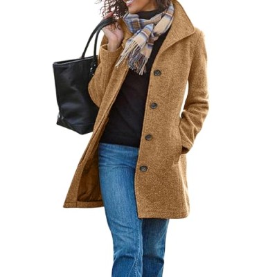 Women's Winter Wool Blend Pea Coat Single Breasted Stand Collar Casual Trench Coat Overcoat