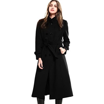 Women's Wool Trench Coat Winter Double-Breasted Jacket with Belts
