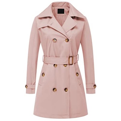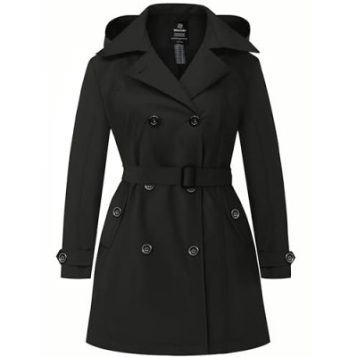 Women's Double Breasted Trench Coats Mid-Length Belted Overcoat Long Dress Jacket with Detachable Hood