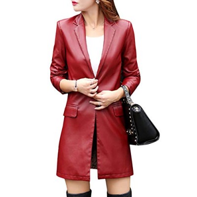 Womens PU Faux Leather Jacket Casual Lapel Long Suit Trench Coat Outerwear