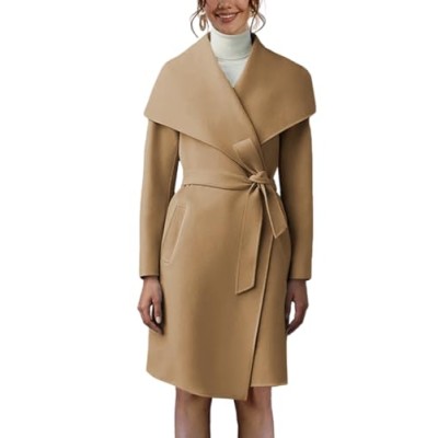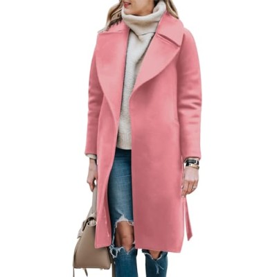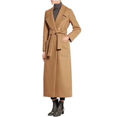Women's Trench Coat Long Wool Blend Pea Coat Winter Casual Overcoat Notched Lapel Collar Belted Long Jacket Outerwear