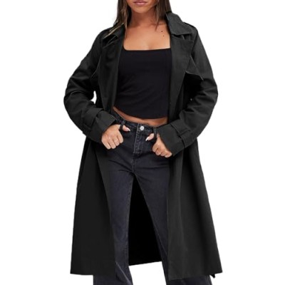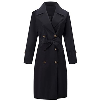 Women's Double Breasted Trench Coats Causal Windproof Long Lapel Pocketed Overcoat with Belt