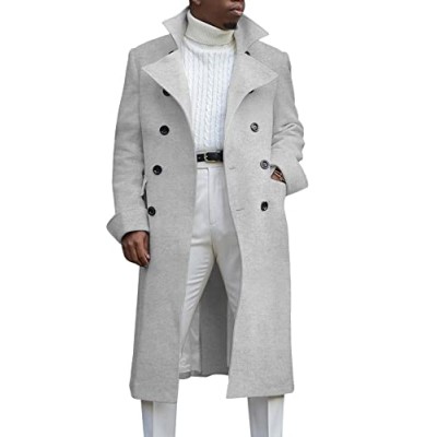 Men's Notch Lapel Double Breasted Long Trench Coat Casual Cotton Blend Peacoat