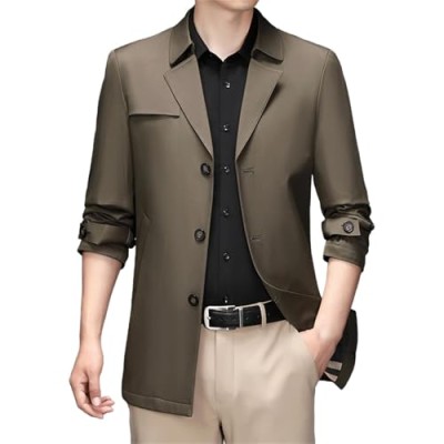 Men's Button Fashion with Handsome Trend Casual Lapel Banquet Long Trench Coat Coat