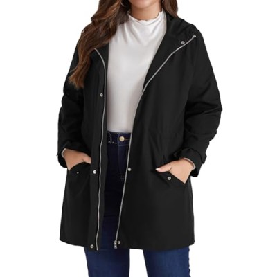 Women's Plus Size Waterproof Raincoat Lightweight Windbreaker Hooded Jacket with Pockets