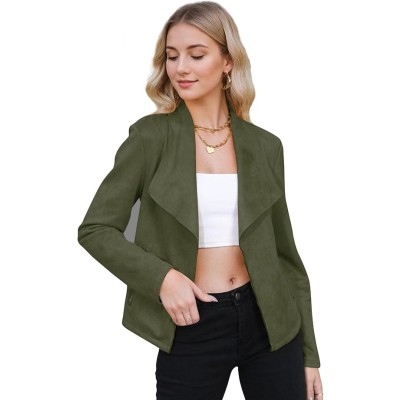 Womens Faux Suede Jacket Open Front Womens Bomber Cropped Jacket with Pockets Outwear Long Sleeve Fashion Biker Jacket