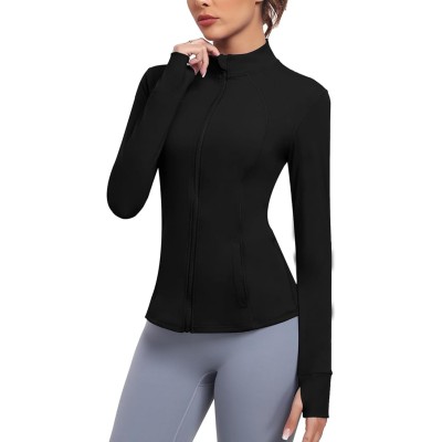 Women's Athletic Full Zip Lightweight Workout Jacket With Pockets Running Yoga Sportwear With Thumb Holes