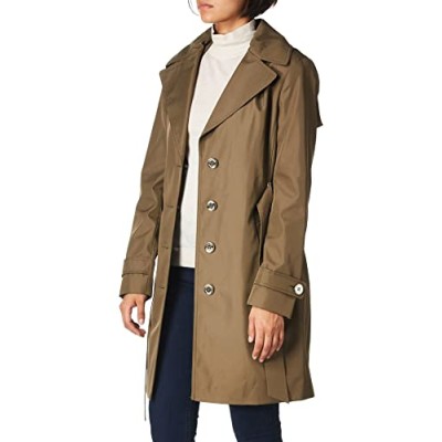 Women's Single Breasted Belted Rain Jacket With Removable Hood