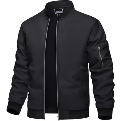 Men's Bomber Jacket Lightweight Casual Spring Fall Windbreaker Zip Up Coat with Pocket