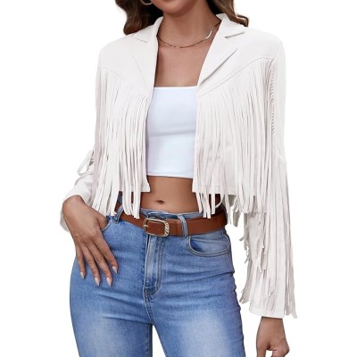 Womens Casual Faux Leather Jacket Fringe Tops Tassel Suede Cropped Coats Motorcycle Jacket