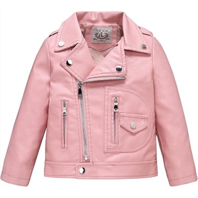 Boys Girls Faux Leather Jacket for Kids Motorcycle Biker Leather Jackets